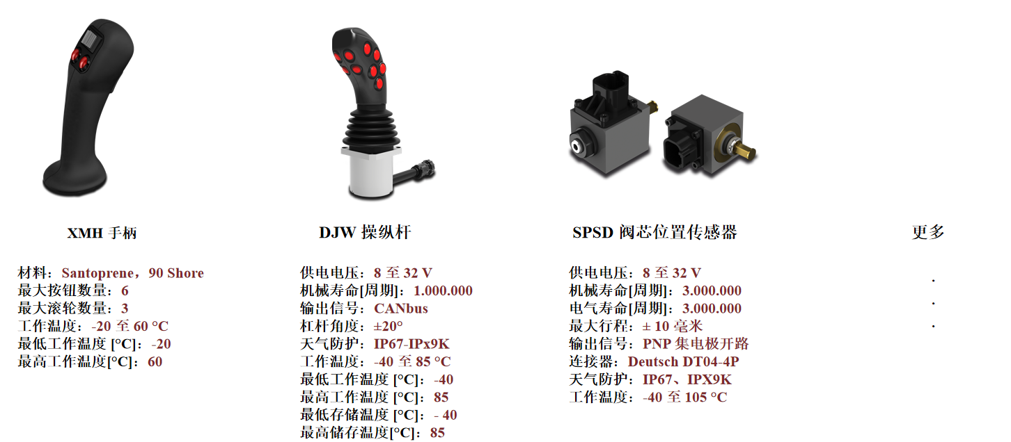 Walvoil在該方面的產品包括手柄、操作桿、閥芯位置傳感器、電子控制單元等等,更多產品詳情可前往官網了解。符合人體工學的新型中型手柄,帶有柔軟的觸感涂層,握持舒適。對稱設計使其適合右手和左手應用。操作員側最多有 4 個控制元件(指輪、按鈕、搖桿開關)。作為選項,可以使用位于手柄另一側的 FNR 開關。新型 Walvoil 操縱桿專為高達性能級別 d / SIL 2 的安全相關應用而設計,它完全密封并防止水和灰塵進入 (IP67/IPx9K)。憑借大量的輸入引腳,操縱桿可以收集手柄的所有信號(指輪、按鈕、搖桿開關等),并使用 SAE J1939、CANopen、CANopen Safety 或 ISOBUS 協議通過 CANbus 網絡發送這些信號。