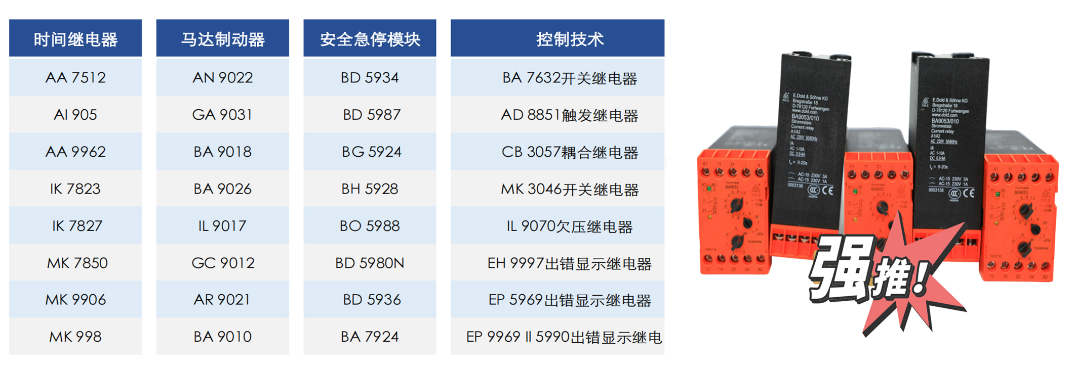 SAFEMASTER 系列安全繼電器適用于緊急停止監(jiān)控、靜止、頻率和速度監(jiān)控以及光柵和安全墊評估等。從單功能安全繼電器到具有現(xiàn)場總線連接的多功能、模塊化安全系統(tǒng),Dold 提供功能安全方面的廣泛產(chǎn)品系列,以及適用于最高 Cat.1 的安全應用的產(chǎn)品系列。 Dold 在全球范圍內(nèi)開發(fā)、制造和分銷用于功能安全、電氣安全和驅動技術的高質量組件和完整解決方案在功能安全領域,單功能安全開關設備(例如緊急停止模塊、停機監(jiān)控和速度監(jiān)控)、多功能安全開關設備和安全系統(tǒng)可確保機器和系統(tǒng)快速可靠地關閉。創(chuàng)新的監(jiān)控解決方案還通過剩余電流監(jiān)控器、絕緣監(jiān)控設備以及測量繼電器和監(jiān)控繼電器確保接地和不接地電源的電氣安全。驅動技術產(chǎn)品系列包括智能電機啟動器、軟啟動器和固態(tài)繼電器或固態(tài)接觸器。開關裝置確保電機的可靠開關、控制和監(jiān)測。控制技術、定時技術和安裝技術完善了 Dold 廣泛的產(chǎn)品組合。